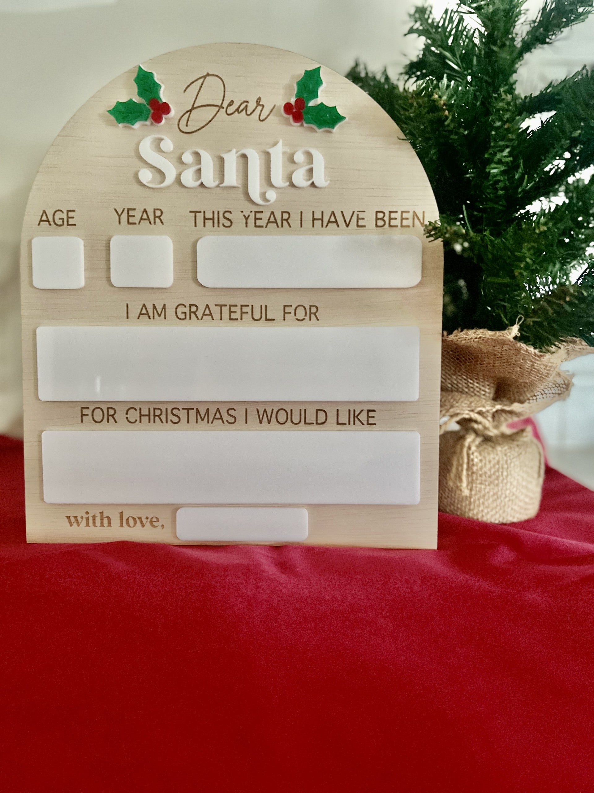 Capture the magic of Christmas with our reusable Dear Santa Plaque! This classic plaque allows you to write a personalized message to Santa every year, making it a cherished tradition for your family. Perfect for creating lasting memories and keeping the magic of Christmas alive